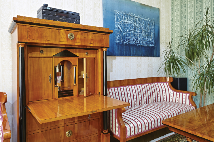 Celá kolekce nábytku Biedermeier je osazena dobovými úchytkami s klíčem plně odpovídajícími historickému stylu.